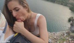 Приступив к работе, девушка активно делает минет, помогая себе руками. Хорошо постаравшись малышка довела парня до оргазма и тот кончил ей в рот.